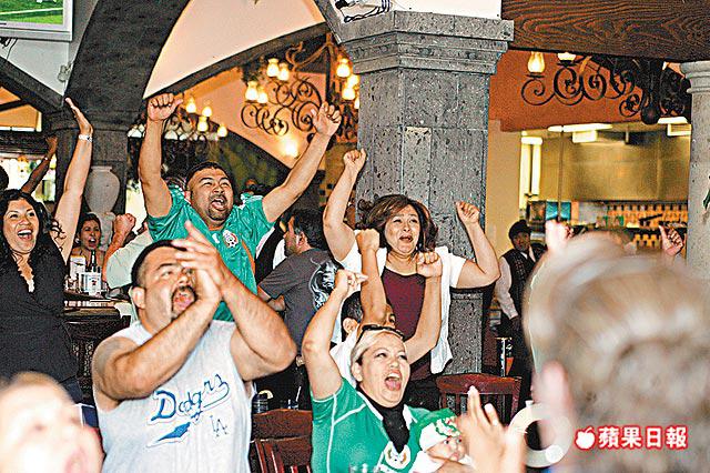 墨西哥先開紀錄時,餐廳內的球迷掌聲雷動,歡呼吶喊。