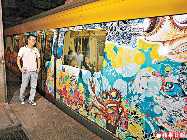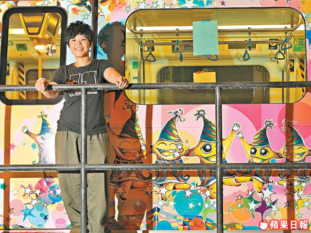 插畫師文少輝算不上當紅,只在樓上書店搞過兩次展覽,但其畫風卻是香港少見。故他獲邀在「星級藝術卡」展出作品,同時自己又參加車身設計比賽勝出,他的藝術生涯也從這卡列車開出了。