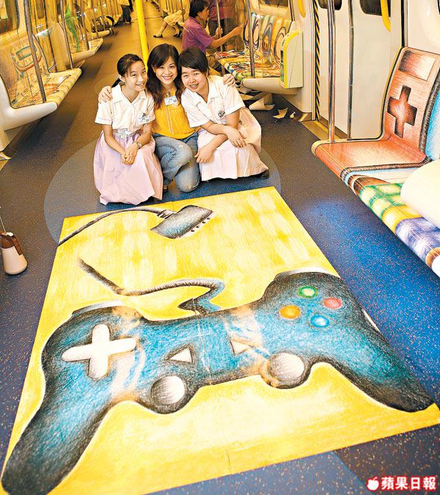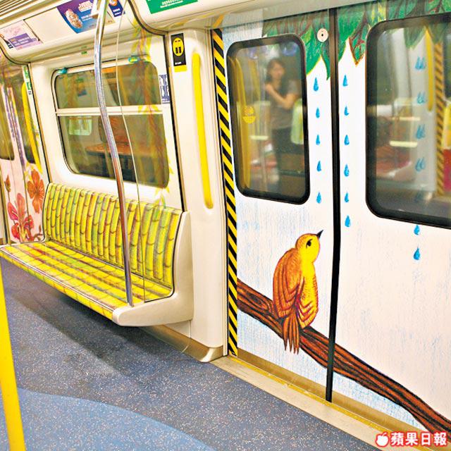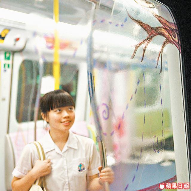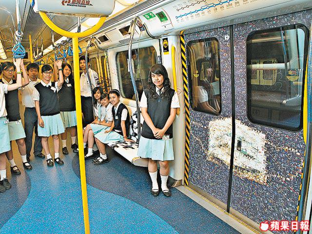 咦?口罩喎。賽馬會體藝中學的十位學生在車廂畫出了回歸十年的件件大事。