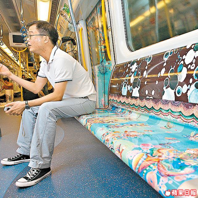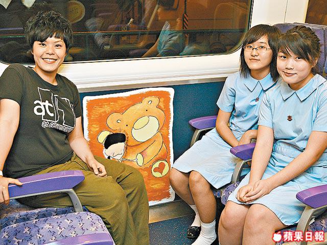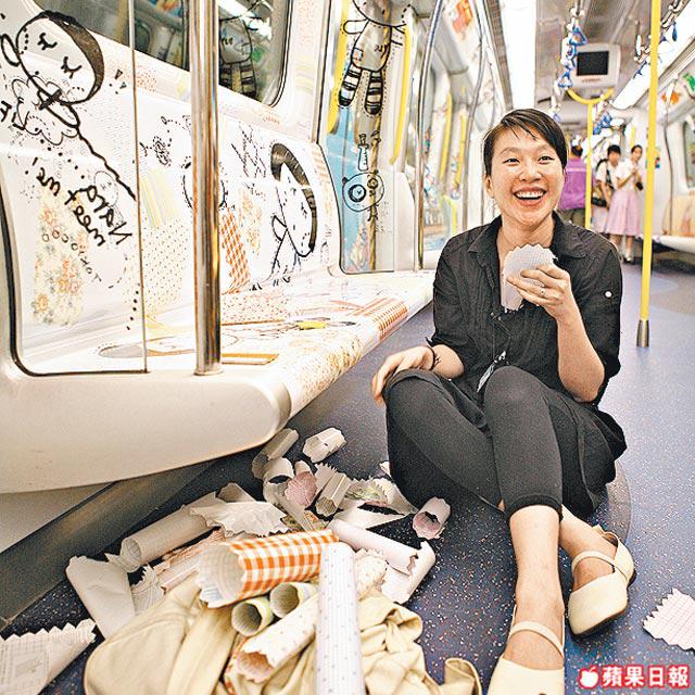 ChocolateRain的公仔不少人見慣見熟,Prudence這次也在車卡帶給乘客熟悉的感覺。「我經常搭早班火車,看見火車很長,不銹鋼與玻璃的感覺很冷,加點人性感覺會好一點。」她看見車上很多人不自覺睡着,畫面上甜甜的朱古力就是帶給人們發好夢的祝願。