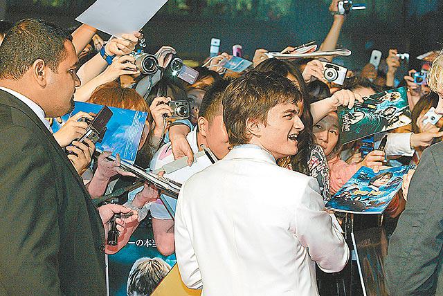 丹尼爾已有4年多沒到訪日本,難怪昨日人山人海,當大會司儀問現場有沒有fans由北海道或沖繩等地老遠到東京捧場時,在場即有不少fans舉手示意,不少影迷更大玩cosplay扮成《哈》片人物捧場,但能夠入場的幸運fans只能選擇在紅地毯前見偶像或入場看首映,不可兩者同享。
