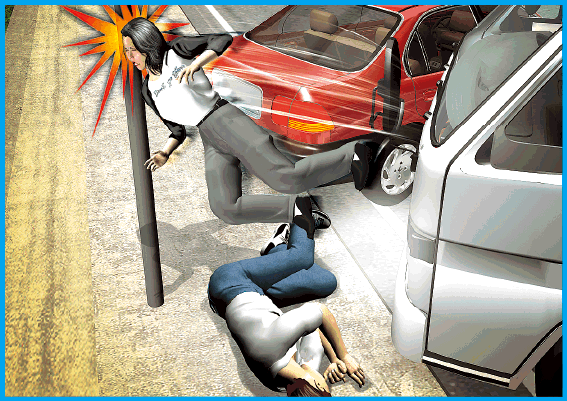 其間,一輛開往荃灣石籬邨的403號滿客專線小巴從隧道駛至,司機始察覺前面貨車亮着死火燈,急忙扭軚閃避卻不果,左邊車頭狂撞貨車右邊車尾,再衝前10米停在中線。被撞貨車失控90度左轉向路邊,並將私家車推前90度轉右。站在兩車之間的兩男一女,僅姓郭(23歲)貨車司機僥倖避開,私家車夫婦則被亂車掃跌,妻子遭拋向旁邊飛撞路牌重創,丈夫奄奄一息倒地。