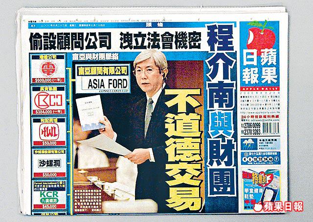 8月,《蘋果日報》揭發前立法會議員程介南以權謀私