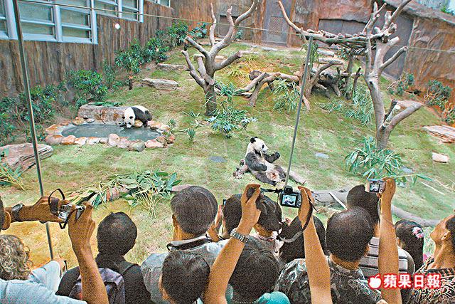 可惜,部份人圍在樂樂、盈盈居所前駐足,不理勸喻「獨享」國寶近15分鐘,有人更索性整個人伏在玻璃前,圖與國寶近距離合照,但樂樂極有性格即時跑開。