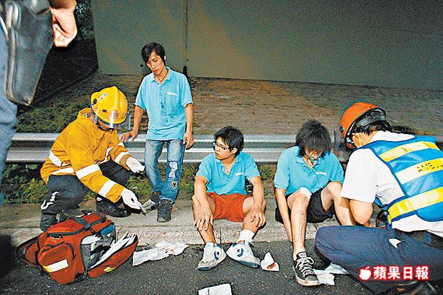 【本報訊】再有駕駛者忽略自身安全,在交通意外後留在公路上「講數」及協助指揮交通而遭尾隨車輛撞至重傷。一輛四驅車昨晨在大埔吐露港公路一個彎位失控撞欄,尾隨貨車及的士為閃避而互相碰撞,司機輕傷落車「講數」,其中貨車司機更協助指揮交通,結果反令尾隨的聖安娜密斗貨車及一部客貨車閃避時失控,密斗貨車翻側鏟上草坪,客貨車則猛撼該名貨車司機,最後意外造成5人受傷送院治理。 記者:杜建彬