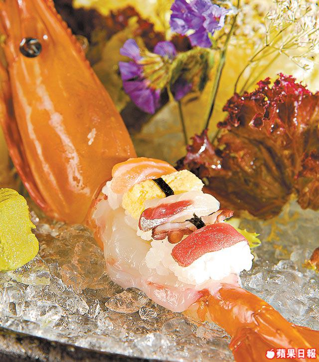 精緻得唔捨得食落肚的牡丹蝦壽司船,壽司船以6吋長的新鮮牡丹蝦作為船身,上面放置5款每件只得1.5厘米長的迷你壽司,仲細過個1毫子,口感和味道與正常size的壽司一樣,盡顯壽司師傅的功力。現凡惠顧VIP房的顧客均可獲贈牡丹蝦壽司船1份。