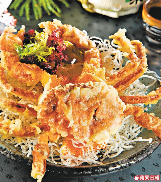 拳頭咁大的軟殼蟹,由沖繩直接入口,大廚話炸時油溫定要嚴格控制在180℃,才能保持蟹的鮮味甘脆,再蘸上沙律醬及冰凍晶瑩的蟹子同食,冰火口感,一試難忘。