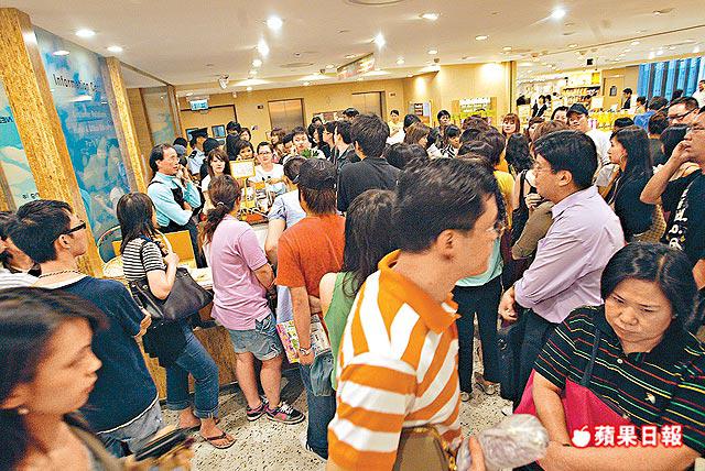 【本報訊】將於今日在亞洲多個國家同步發售的英國人氣品牌AnyaHindmarch環保袋,在明星效應及強勁宣傳攻勢下,昨天吸引逾千市民在全港四家專門店及一家高檔超市通宵排隊搶購,當中包括一隊由「炒家」率領的百人「排隊黨」,但由於各個售賣點均出現打尖、鼓譟的混亂場面,警方派員到場維持秩序,並要求改用派籌方式疏通人流。結果逾千張籌瞬間派光,但聚集在中環及尖沙嘴五個售賣點的600多名向隅者,直至昨深夜仍不肯散去,群情洶湧。 記者:溫文學、劉漢權