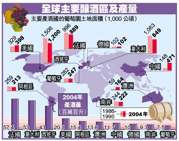 法國、意大利和西班牙等歐洲國家生產和消耗的紅酒,佔全球3/5,但近年銷售與出口成績皆停滯不前,每年困在40億歐元(約426億港元)關口,反而澳洲、阿根廷和美國加州等「新世界」紅酒銷售不斷增加,至2004年入口歐盟的紅酒已飆升至9.5億公升,比1993年多逾10倍。