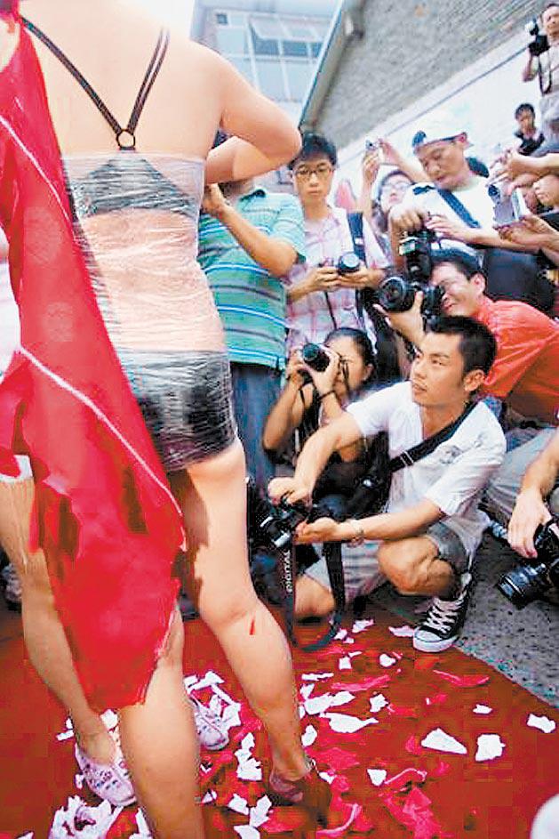 兩名身材標致的靚女,大庭廣眾下,拿着剪刀互剪對方穿着的旗袍。兩人逐小片地剪,直至所穿旗袍被對方剪得支離破碎,露出了分別被保鮮紙和紗布包裹、僅穿內衣的身軀。請不要「心邪」,這只不過是重慶「川美坦克庫藝術基地」前晚進行的一場行為藝術表演。睇唔明?唔緊要,或者就正如網民所言:「再『高』的『藝術』也只不過是皇帝的新衣!」