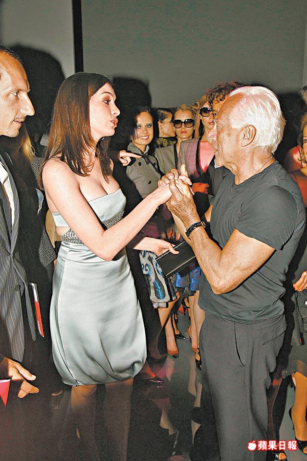一向對明星賓客熱情如火的意國巨匠GiorgioArmani,曾摸過言承旭面頰,錫過范冰冰。他於香港時間昨日凌晨在巴黎舉行的高級訂做服時裝騷,主演《穿Prada的惡魔》女角安妮夏菲慧低胸捧場,Armani攬腰、捉手,熱情款客。