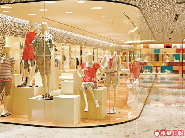 舖頭最具特色的就是店中心的巨型圓柱陳列櫃與更衣室,以不同顏色水晶膠片劃分展示部份。而兩旁則是深入牆身的陳列櫃,放着全身模型人,展示推介服飾。