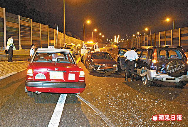 另外,昨凌晨零時許,姓陳(18歲)「新牌仔」青年駕駛私家車沿吐露港公路往新界駛至白石角對開,他事後聲稱為閃避切線車輛,失控撞向左邊路肩斜台後打「白鴿轉」停在慢線,尾隨四驅車和的士駛至分別撞向肇事私家車。