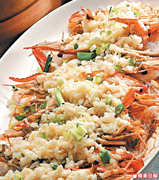 蒸蝦的蒜茸一定要事先調味,想更香口可以炸蒜混生蒜同蒸。