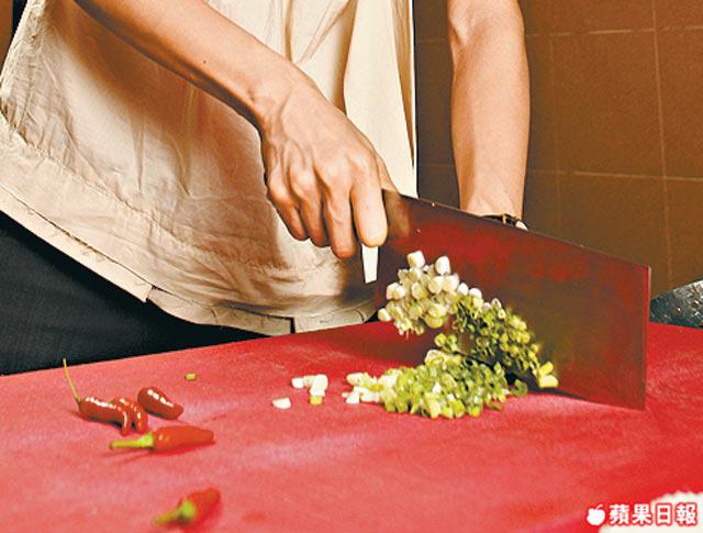 切葱時儀態萬千,卻又切得尚算幼細,不愧是名模。