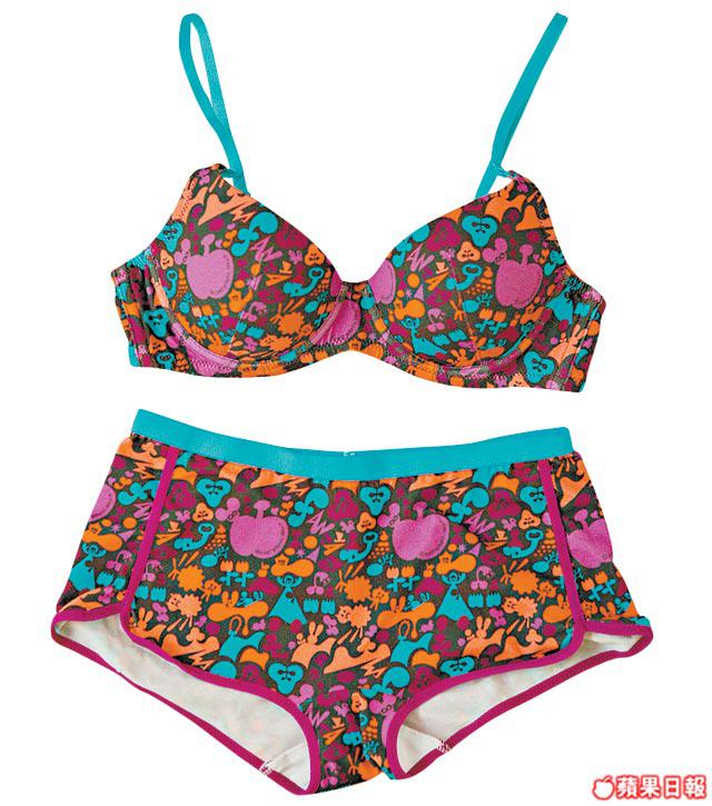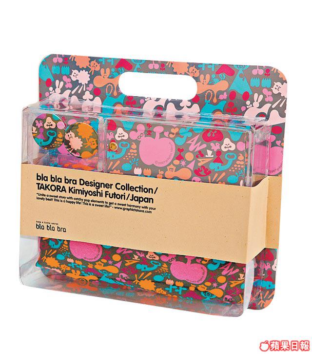 blablabra最新的Crossover計劃是推出與日本新進著名設計師太公良合作設計的DesignerCollection。太公良本為新進視像設計師,曾與多個國際品牌合作,如CommedesGarconHomme及Sony等。是次合作的設計概念以繽紛鮮艷為主,配以可愛非常的拼貼圖案,以鮮艷的紫色為主調,絕對是夏日天氣不錯的內衣款式。