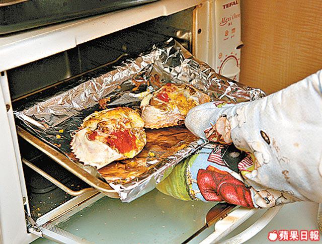 材料:膏蟹2隻(約1斤)、免治豬肉50克、雞蛋黃2個、油1湯匙、芝士少許