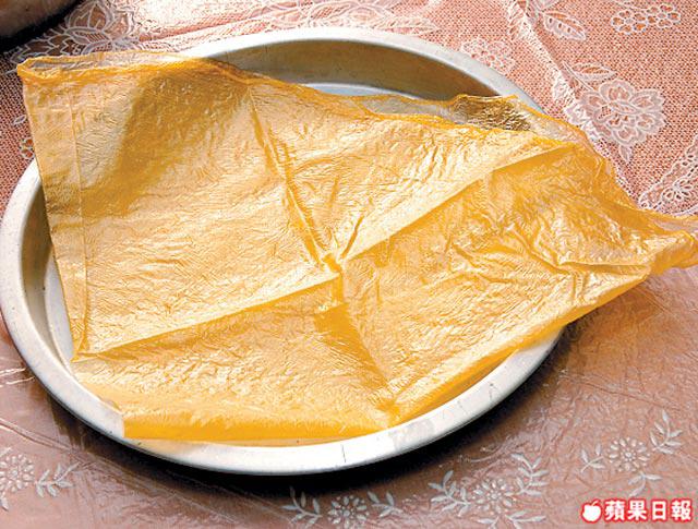 包腐皮卷用的腐皮跟腐竹和炸枝竹不同,於豆腐店才有售,用前要用微濕布輕抹,約$4/張。