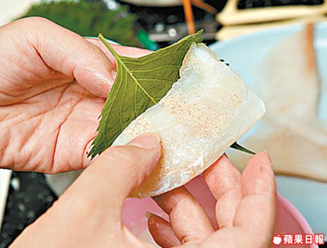 龍脷柳切件加醃料醃10分鐘,1片新鮮紫蘇葉包住龍脷柳,沾上炸漿,炸至金黃色盛起,食時落調味便可。
