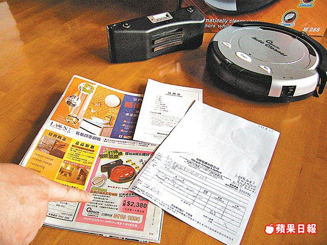 另外,當電力耗盡後,功能上聲稱會自動返回充電座充電,可是卻失靈,無法「歸位」。黎先生苦笑說,「原本諗住買嚟方便自己,𠵱家得物無所用,兼帶來咁多不便。」還有,說明書寫明每次充滿電,可用60分鐘以上,但他見該部機操作50分鐘便無電,與說明有差別。