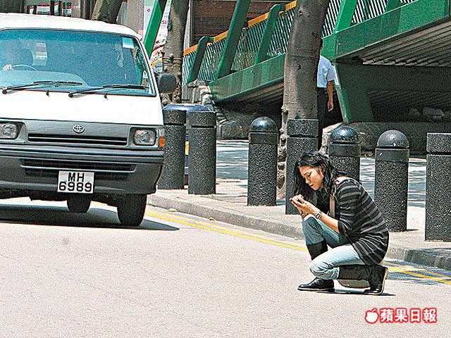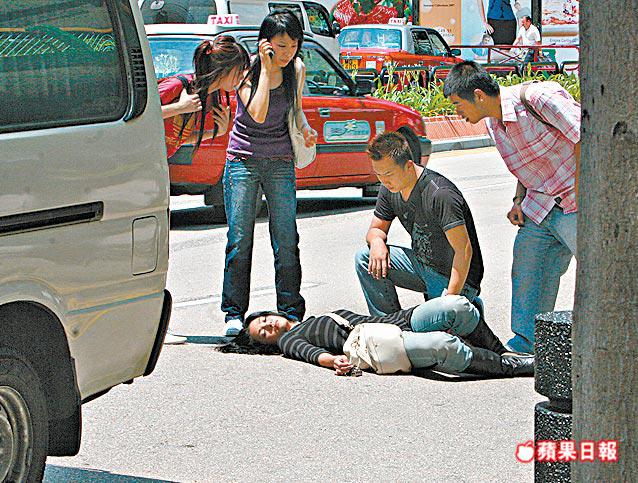 前日林峯到尖東拍攝外景,現場只見工作人員先拍攝身穿冷衫襯長靴的廖碧兒,偶然發現貌似林峯的男子坐在餐廳內,她情急衝過馬路時不慎弄跌MP3機,蹲身撿回之際慘被車撞死,而《觸》片中男主角李政宰為見全智賢,也不幸遇上車禍。