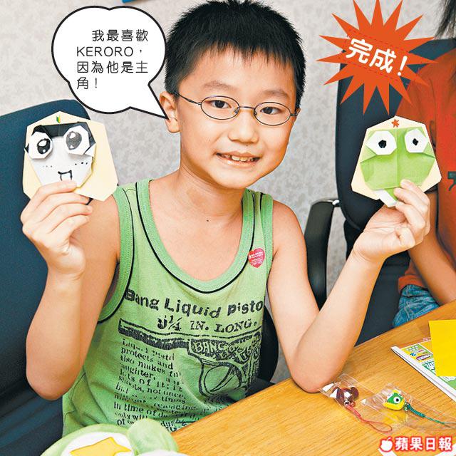 KERORO軍曹很受小朋友歡迎,一講到可以用2張正方形的摺紙,摺出一個KERORO可愛大頭,大家都覺得非常神奇!你也想學?快預備紙張吧!