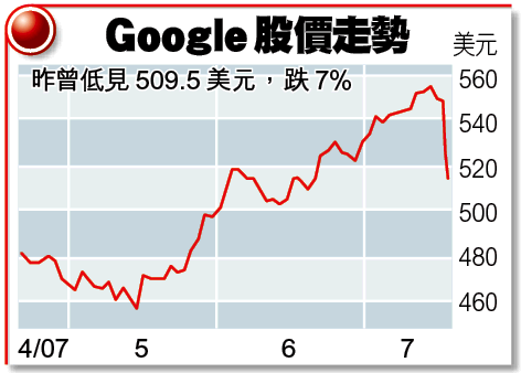 【本報綜合報道】全球最大搜尋網站Google由於研發開支激增及人力資源成本超出預算,上季盈利僅增28%,較市場預期為差,拖累股價一度跌逾7%。