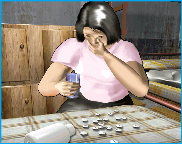 但她自己卻沒有放棄死念,進屋後先吞服30多粒安眠藥,其後又用餐刀自割左手腕企圖雙料自殺,並躺在床上等死,當時謝婦的兒子相信仍未睡醒。