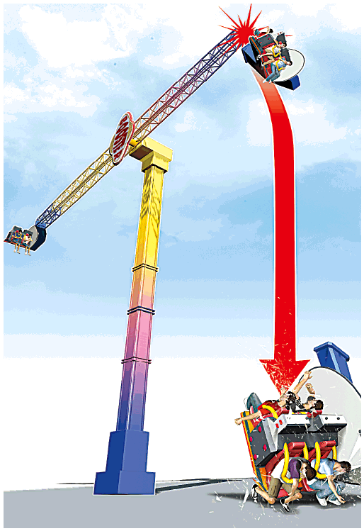 加來海峽省遊樂場一款名叫「降落傘」的機動遊戲突然失靈,吊艙急墜落地,23人受傷