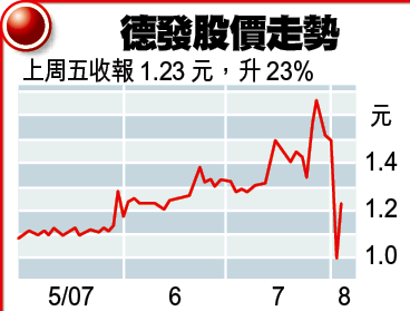 【本報訊】德發集團(928)昨日發出截至今年3月底止的最新年報,揭露早前因核數師畢馬威對財務資料持保留意見,惹來基金上周四大洗倉之謎。當日德發股價大33.33%,收報1元。上周五則收報1.23元,升23%。