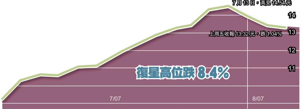 註:中移動上周五收報88.6元,升1.32%;中交建收15.62元,跌1.39%;中行收3.92元,跌1.26%;復星收13.32元,跌1.04%。