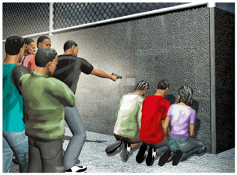 罪惡率高企的美國新澤西州紐瓦克巿(Newark),上周六發生冷血至極的處決式槍殺案。三名品學優良的大學生或準大學生,被迫排成一字面壁跪下,然後遭人近距離開槍轟斃。另一名大學生近耳部位中槍,僥倖生還。當局懸紅20,000美元(156,600港元)徵求破案線索,目前未有人被捕。