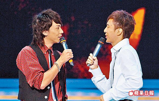 鄧健泓(右)昨晚不單止獲無綫器重,派他擔任廣告頒獎禮司儀,而且更安排他大展歌喉演唱了幾首廣告歌,不過,當他介紹廣告童星出身的張繼聰(左)出場時竟口不擇言說:「你細細個咁得意,但大個就咁……有才華。」明踩張繼聰不及小時候可愛,幸張繼聰未有介意更說:「所以就要細細個留倩影。」