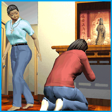 本月13日晚上9時,陳婦回家時,發現觀音像及佛像不知所終,於是向被告查問,被告承認她認為觀音像及佛像都不是真神,指陳婦所做是偶像崇拜,於是將佛像棄於住所後山。陳婦聞言立即到後山察看,發現玻璃箱及兩尊像俱已砸毀,立即報警。