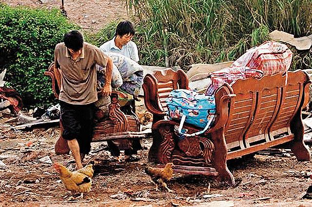 這些民工靠撿垃圾為生,棚屋內堆滿廢品和大量垃圾,臭氣迫人。肚餓時就在垃圾旁放一個鍋煮食。