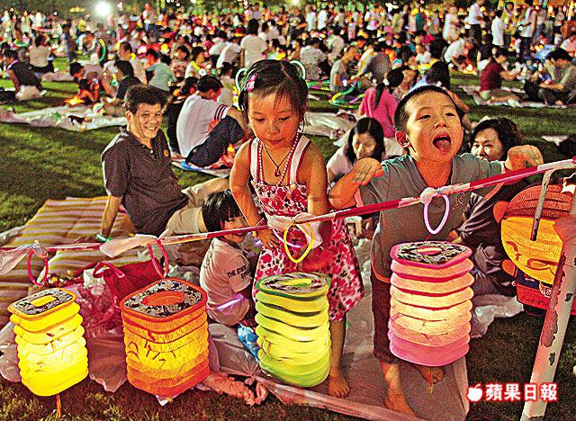 昨日早上天色昏暗有雨,但下午雲層漸散,天色逐漸明朗,皎潔明月徐徐升起,增加市民出外賞月的興致。在全港多個地區舉行的中秋綵燈會中,以維園綵燈會最熱鬧及人頭湧湧,昨下午起已有不少市民來觀賞綵燈。有家長表示,由於怕晚上人多及擔心天氣不穩定,提早帶小朋友前來。