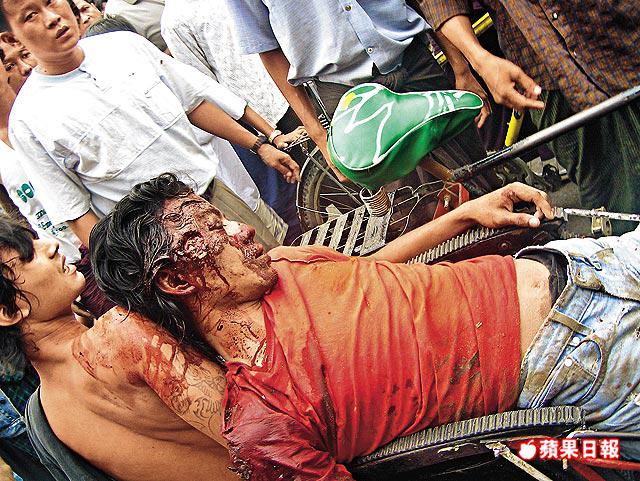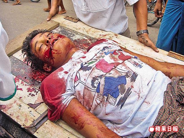 緬甸軍政府昨天連續第三天鎮壓「袈裟革命」,軍隊將寺院上鎖阻擋僧侶外出,開槍驅散繼續冒死上街的上萬示威者,也有人目擊士兵在足球場挖掘大坑,準備用作萬人塚。大屠殺迫近眉睫,仰光更傳出消息︰有士兵不肯向示威者開槍,連仰光指揮官也因抗命被軟禁,空軍更有戰機突然升空。軍隊翻起暗湧,軍政府獨裁者丹瑞已親自出馬指揮鎮壓,並將軍頭家眷送到老撾和澳門避鋒頭,勢大開殺戒。