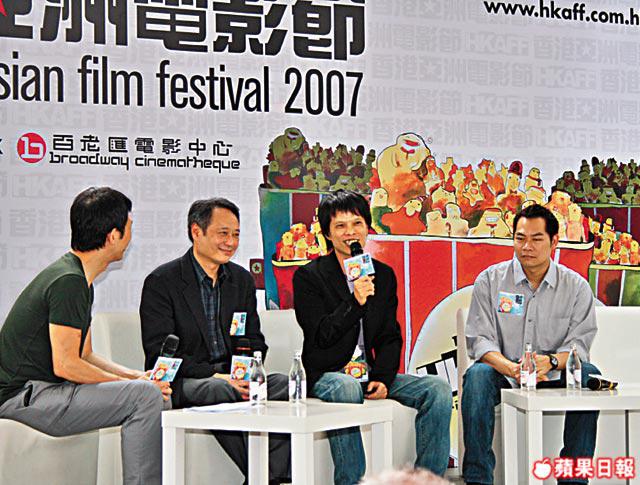 上星期天的亞洲電影節座談會,有李安,旁邊坐着林靖傑,我經過看了一眼,以為是伍佰。跟導演說起,他笑了,蹺起手裝不忿,「一直有人這麼說!我近年把頭髮剪短了,以前更像。」邊笑邊露出伍佰沒有的齙牙。果然,《蘋果》資料庫有導演03年長髮Look,劉海過眉蹺手,恍如怒青,更似伍佰。