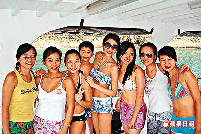 其中一張是Sharon硬拉一班女子拍的合照,雖然她當日戴上墨鏡,但依然明艷照人。在「全女班」照片中,一名小男孩卻藏身其中,Sharon事後笑說:「又有Eason份,哈哈!」看來她與該小孩相當熟稔。