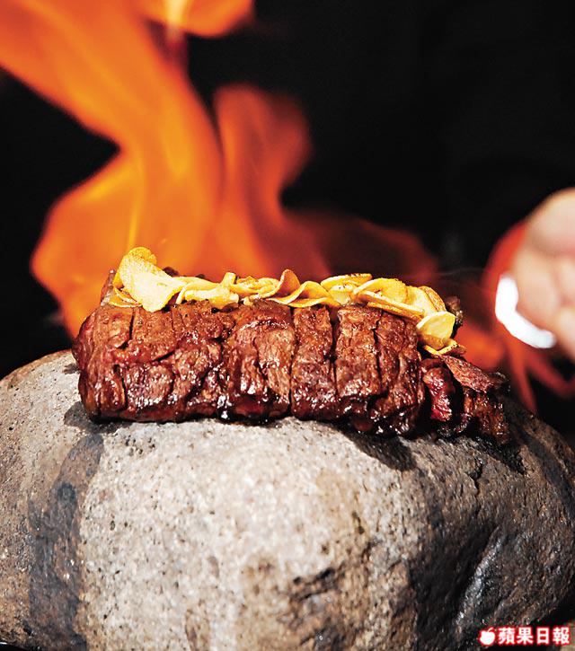 火山石燒和牛,加入軒尼詩酒,火燄一下子包住和牛,火燄緊鎖和牛肉汁,惹味得很。
