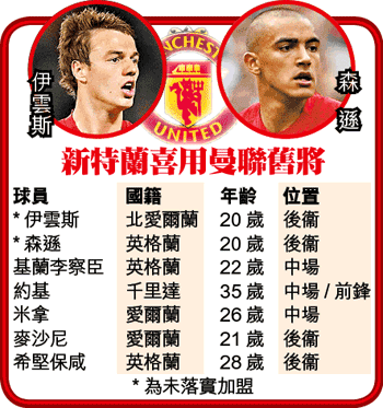 【綜合英國外電】堅尼再「吼」曼聯兵救亡!英超的新特蘭領隊堅尼上周六表示,希望明年1月再借用曼聯一對年輕後衞伊雲斯及森遜,假如成事的話,這位前曼聯隊長麾下,就有多達7位曾效力曼聯戰將。