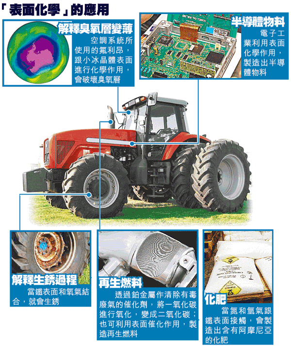 提起化學,人們都會聯想起科學家拿着一支又一支的試管,不斷攪動試管內的化學物質。但昨天成為本年度諾貝爾化學獎得主的德國科學家埃特爾(GerhardErtl),多年來少用試管,只埋頭苦幹研究「表面化學」(surfacechemistry),他的研究用途廣泛,幫助人類有效排放汽車廢氣,掌握燃料電池、化肥以至臭氧層破壞的原因,對經濟和環保影響深邃。化學原來可以很不化學。