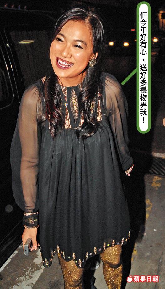 前晚自認仍然單身的珊珊在中環Qube酒吧罕有地大事慶祝生日,她甫到場即笑不攏嘴地說:「生日願望係人人都開心,今晚全部錫我嘅人都會嚟,我唔係年年搞生日,今年要多謝錫我嘅人。」疼錫珊珊的人當然少不了錢嘉樂,前晚壽星女到達約半小時後,他便提着兩大袋禮物到場,其中包括一部Wii遊戲機。