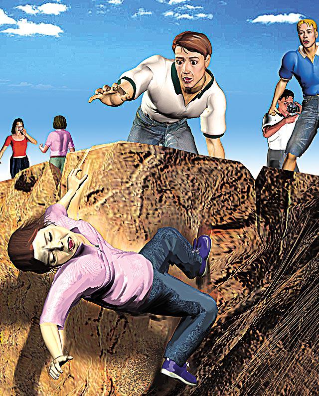 2)女童走到一處沒圍欄的懸崖邊,觀光時失足跌落140米下的谷底