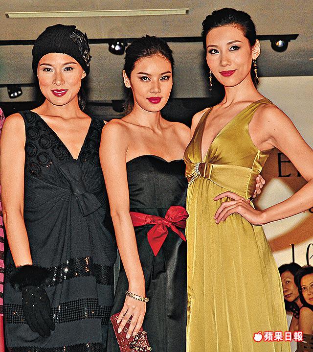 (右起)姚書軼、樂基兒及楊崢等名模示範一系列以瑪麗皇后為靈感的新裝。