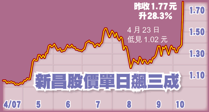 噚日升嘅建築股好似俊和(711)同有利集團(406),分別升15%及17%;新昌營造(404)仲因為勁升28%,停埋牌㖭,不過噚晚復牌,公佈話股權可能易手喎。就連隻搭棚嘅滙隆控股(8021)都升1.7%。難怪網友都建議:「今日買建築股。」