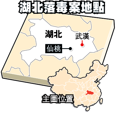 湖北仙桃市地方稅務局第二分局的飯堂,昨晨發生落毒案,導致13名員工在進食含劇毒老鼠藥「毒鼠強」的早餐後中毒,導致最少七人嚴重昏迷、一人危殆、一人死亡。事發後,當地警方將飯堂三名職員扣留協助調查,這是該局飯堂兩年內第三次遭人下毒。最少有200名病者及死者親友質疑有關部門處理不當,一度情緒激動在醫院內與公安對峙。