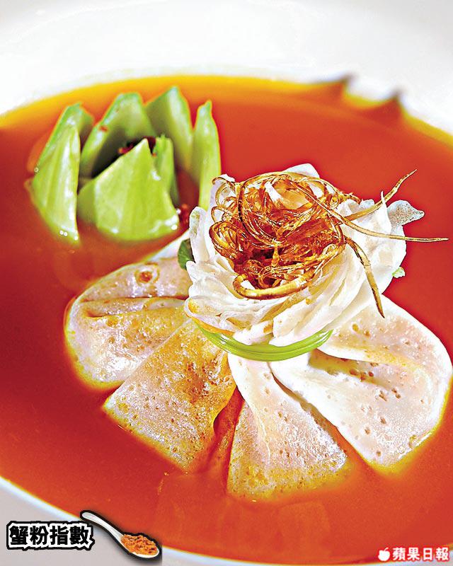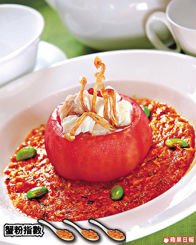 香滑的蟹肉豆腐釀入番茄之內,賣相吸引,實不忍把番茄弄破。