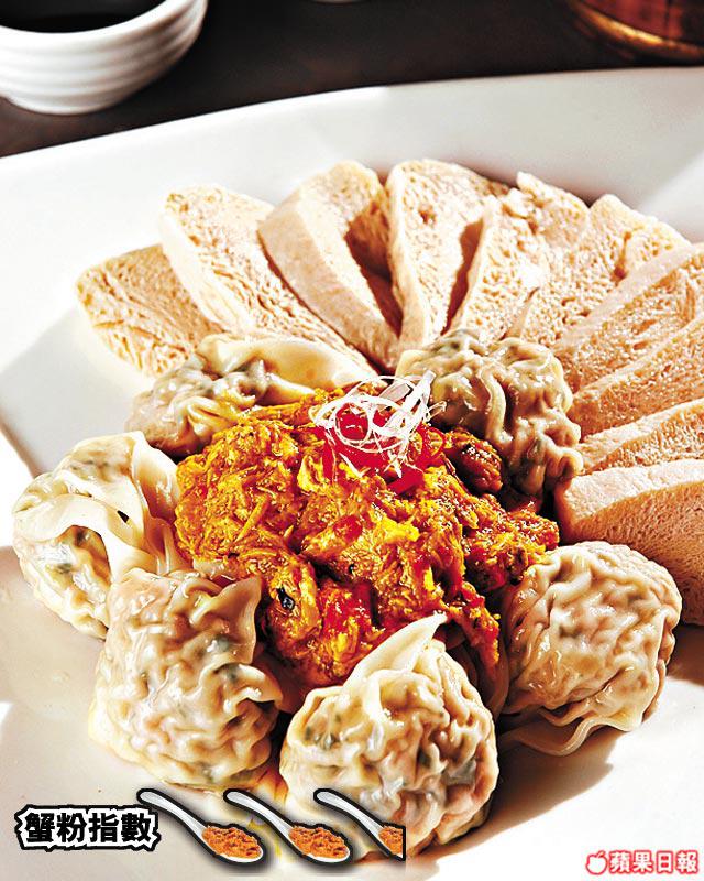 冰豆腐用沸水煮過再雪足整天,滲透蟹粉鮮甜,再來一口菜肉雲吞中和,感覺新鮮。