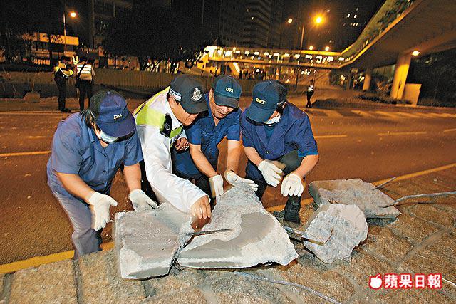 【本報訊】一部豐田ESTIMA「大霸王」豪華七人車,昨凌晨在中環干諾道中黑夜高速飛馳,疑掟彎失控狂撞石壆,數以百計石屎如炮彈碎片四射,部份大塊之石屎重逾百公斤。其間私家車、的士及小巴三車剛駛入「碎石陣」,三車車身均「中彈」毀爛及擋風玻璃爆裂,事件中幸僅3人受輕傷。警方正調查意外原因。記者:黃江奇